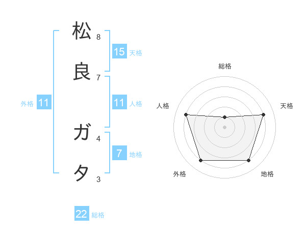 松良 ガタさんの総格は22画の1点!