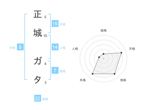 正城 ガタさんの総格は22画の1点!