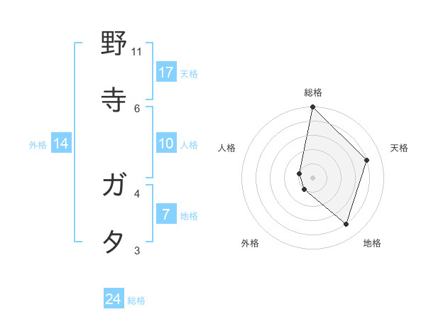 野寺 ガタさんの天格は17画の4点!