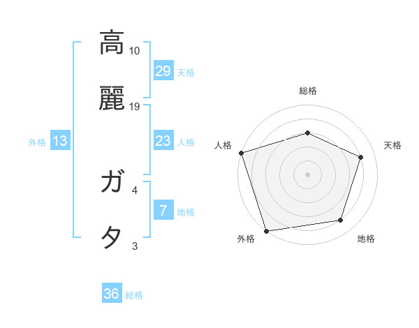 高麗 ガタさんの総格は36画の3点!