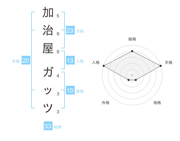 加治屋 ガッツさんを姓名の画数から五運を鑑定