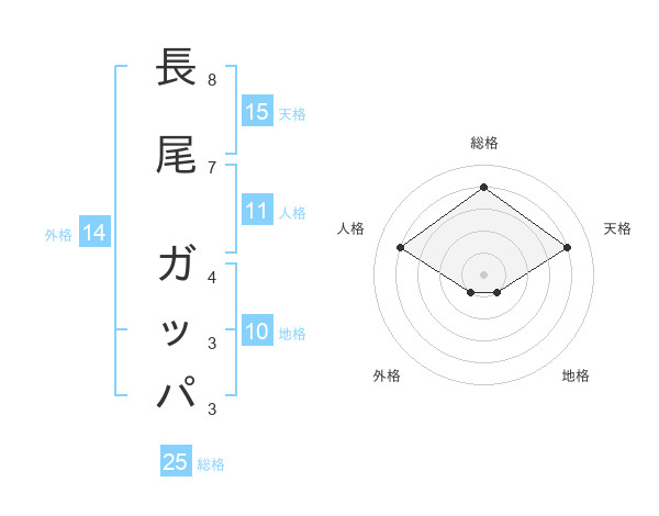 長尾 ガッパさんを姓名の画数から五運を鑑定