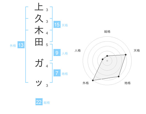 上久木田 ガッさんを姓名の画数から五運を鑑定