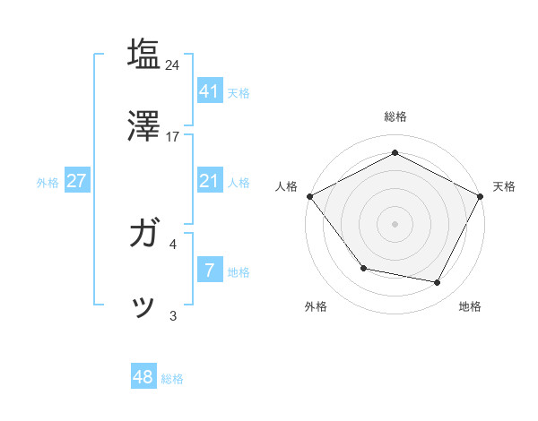塩澤 ガッさんを姓名の画数から五運を鑑定