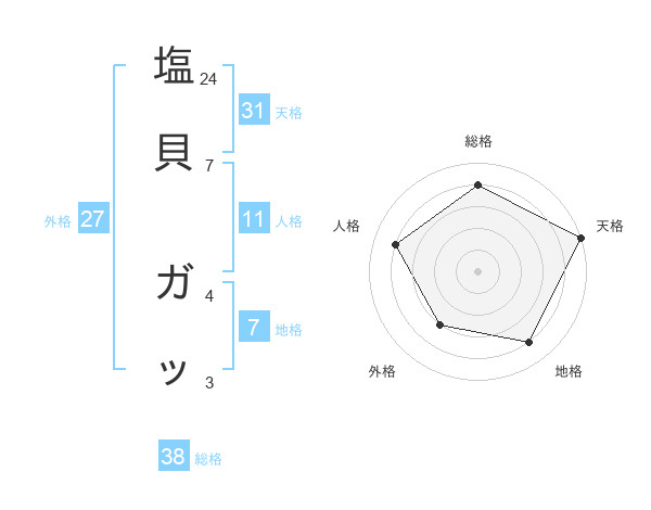 塩貝 ガッさんの天格は31画の5点!