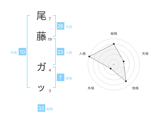 尾藤 ガッさんを姓名の画数から五運を鑑定
