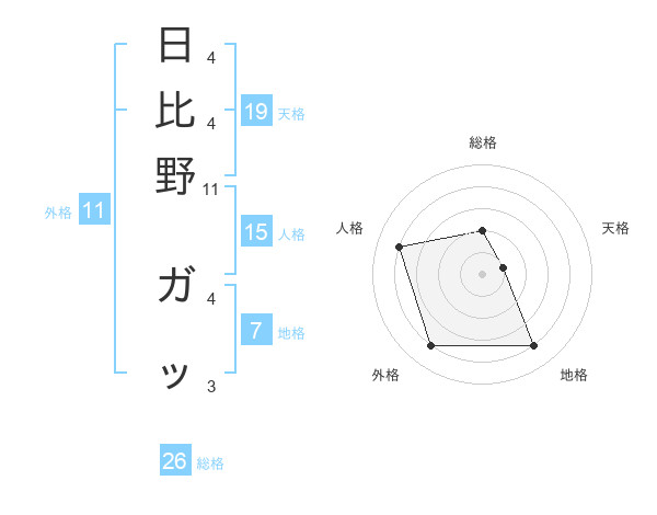 日比野 ガッさんを姓名の画数から五運を鑑定