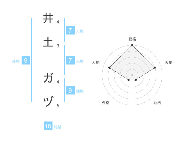 井土 ガヅさんの総格は16画の5点!