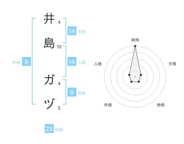 井島 ガヅさんの総格は23画の5点!
