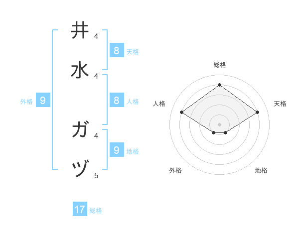 井水 ガヅさんを姓名の画数から五運を鑑定