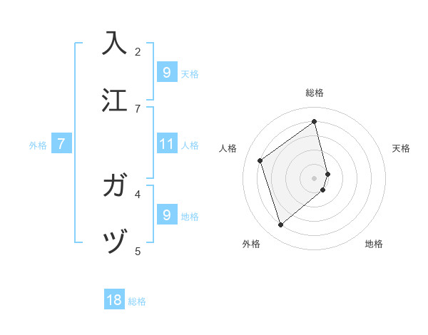 入江 ガヅさんの総格は18画の4点!