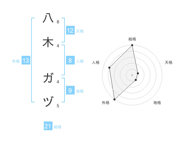 八木 ガヅさんを姓名の画数から五運を鑑定