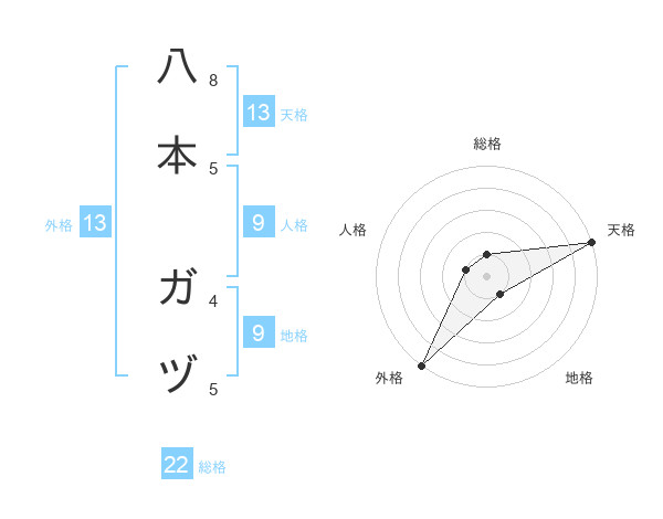 八本 ガヅさんを姓名の画数から五運を鑑定