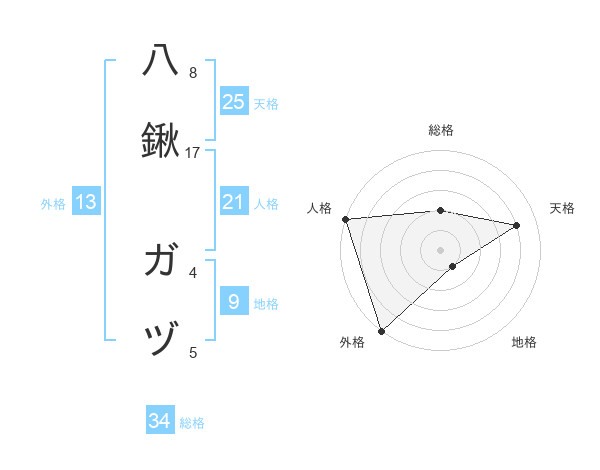 八鍬 ガヅさんの外格は13画の5点!