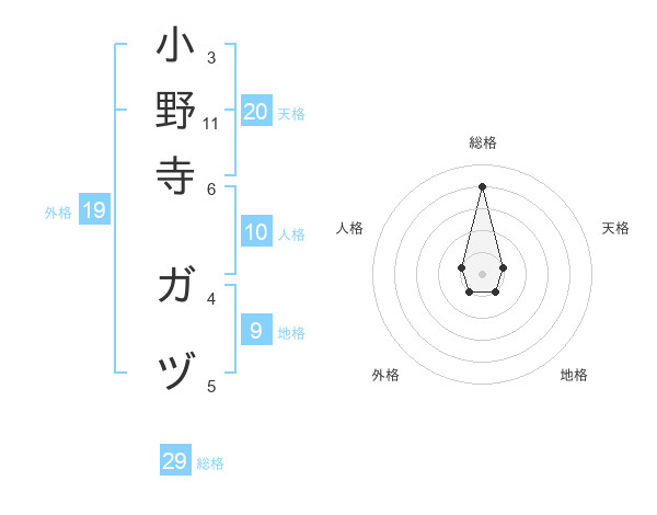 小野寺 ガヅさんの総格は29画の4点!