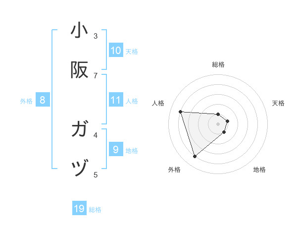 小阪 ガヅさんを姓名の画数から五運を鑑定