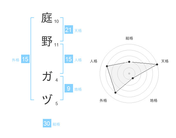 庭野 ガヅさんの総格は30画の2点!
