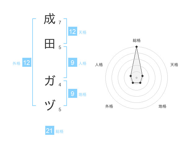 成田 ガヅさんの総格は21画の5点!