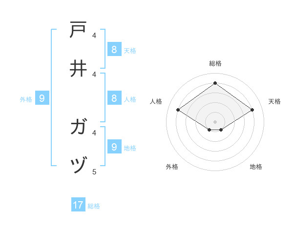 戸井 ガヅさんの総格は17画の4点!