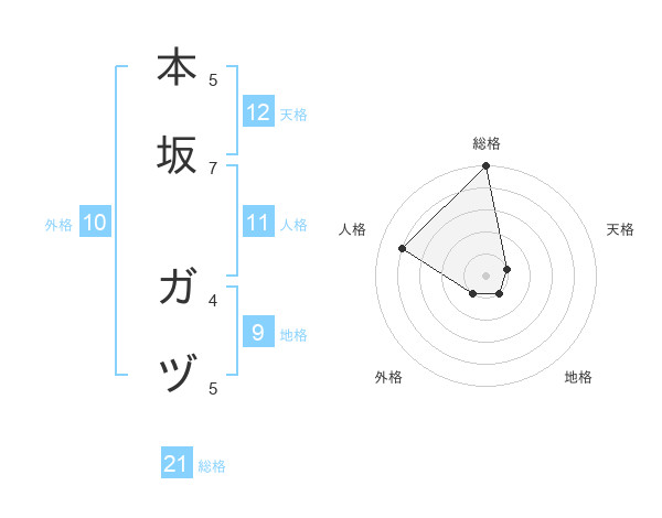 本坂 ガヅさんの総格は21画の5点!