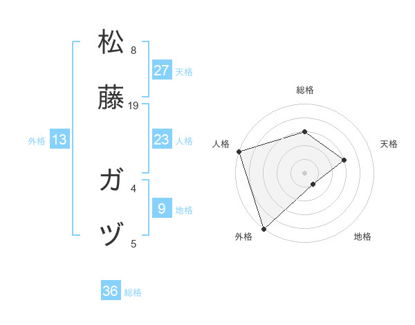 松藤 ガヅさんの外格は13画の5点!