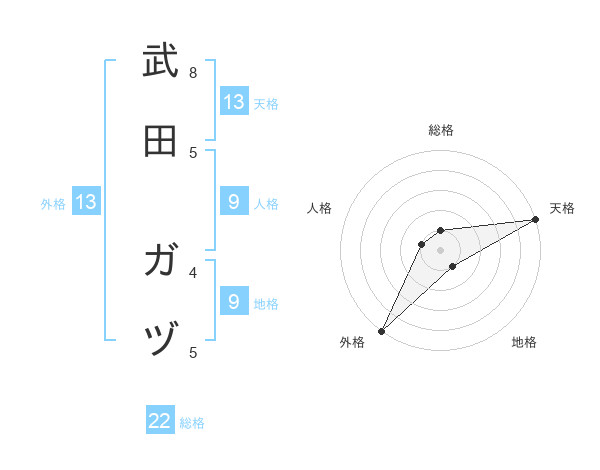 武田 ガヅさんを姓名の画数から五運を鑑定