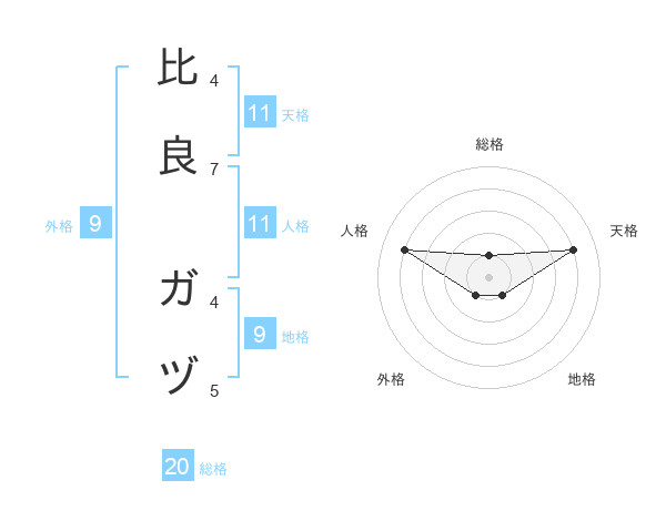 比良 ガヅさんの総格は20画の1点!