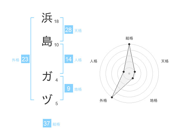 浜島 ガヅさんを姓名の画数から五運を鑑定