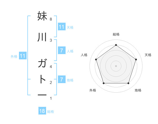 妹川 ガトーさんを姓名の画数から五運を鑑定