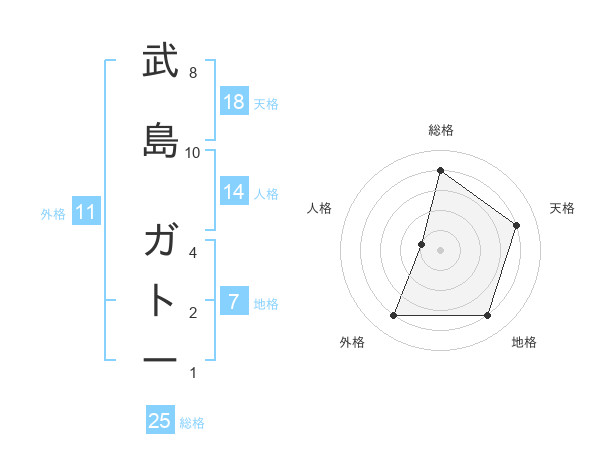 武島 ガトーさんを姓名の画数から五運を鑑定