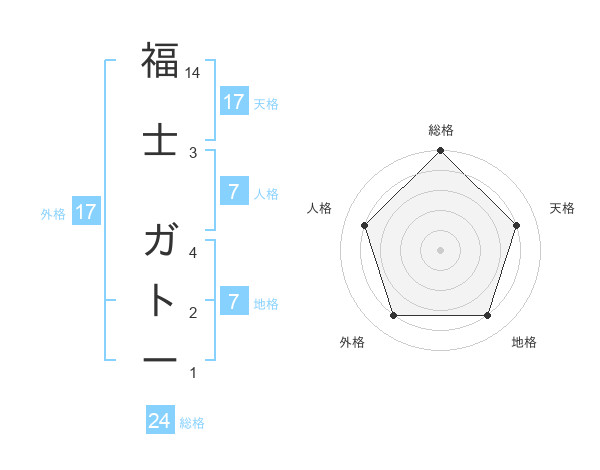 福士 ガトーさんの天格は17画の4点!