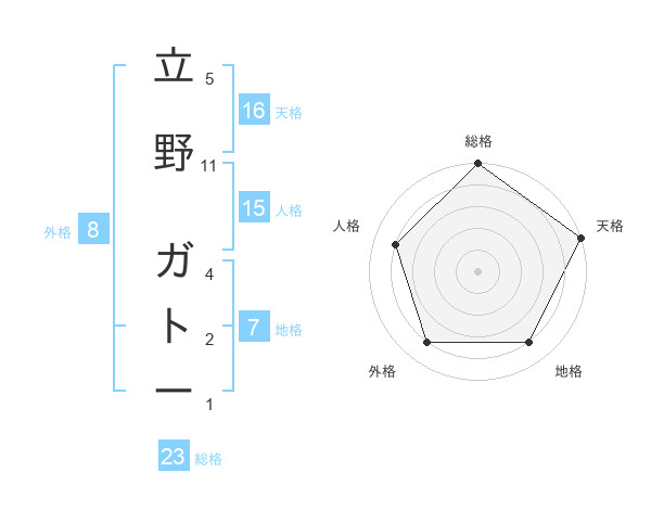 立野 ガトーさんの天格は16画の5点!