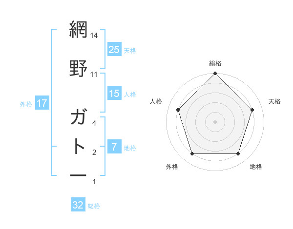 網野 ガトーさんの天格は25画の4点!