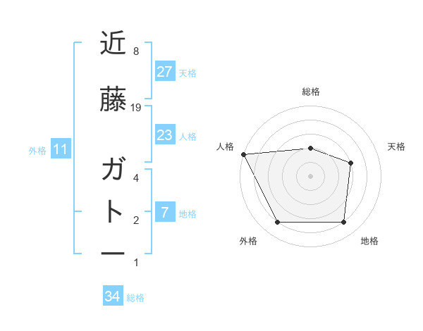 近藤 ガトーさんを姓名の画数から五運を鑑定