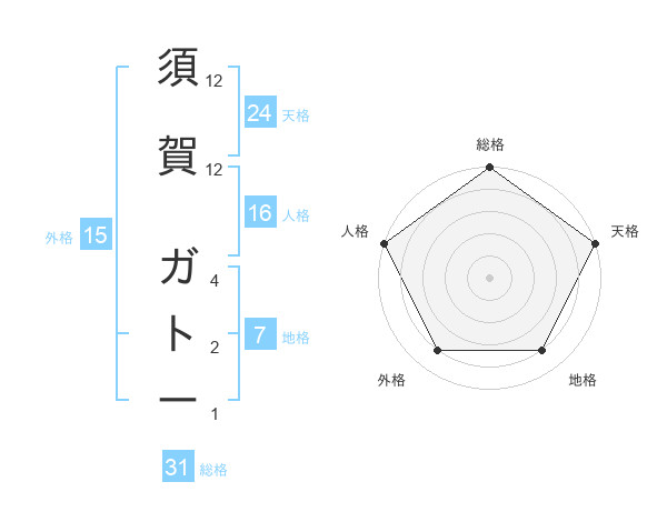 須賀 ガトーさんの天格は24画の5点!
