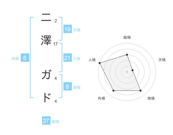 二澤 ガドさんを姓名の画数から五運を鑑定