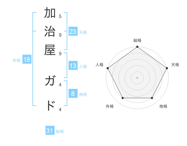 加治屋 ガドさんの天格は23画の5点!