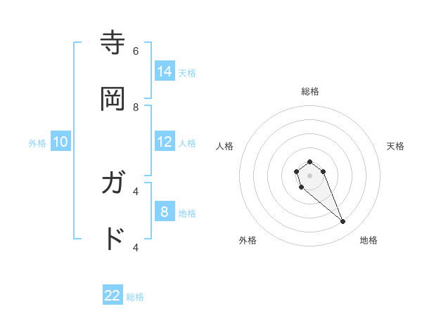 寺岡 ガドさんを姓名の画数から五運を鑑定