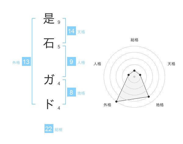是石 ガドさんの外格は13画の5点!