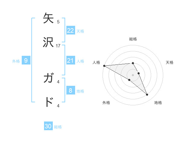 矢沢 ガドさんの総格は30画の2点!