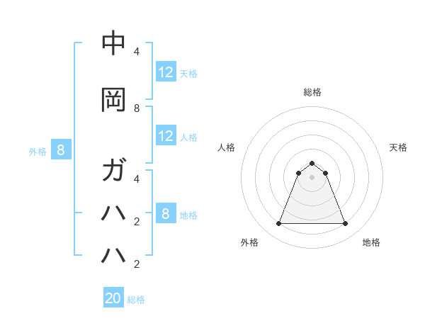 中岡 ガハハさんの外格は8画の4点!