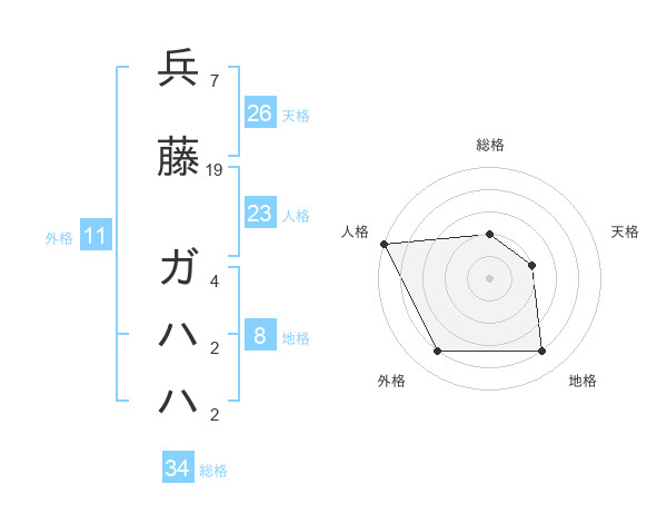 兵藤 ガハハさんを姓名の画数から五運を鑑定