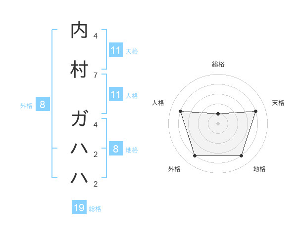 内村 ガハハさんの外格は8画の4点!