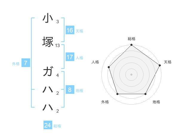 小塚 ガハハさんを姓名の画数から五運を鑑定