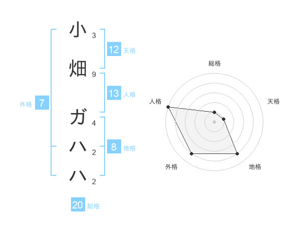 小畑 ガハハさんを姓名の画数から五運を鑑定