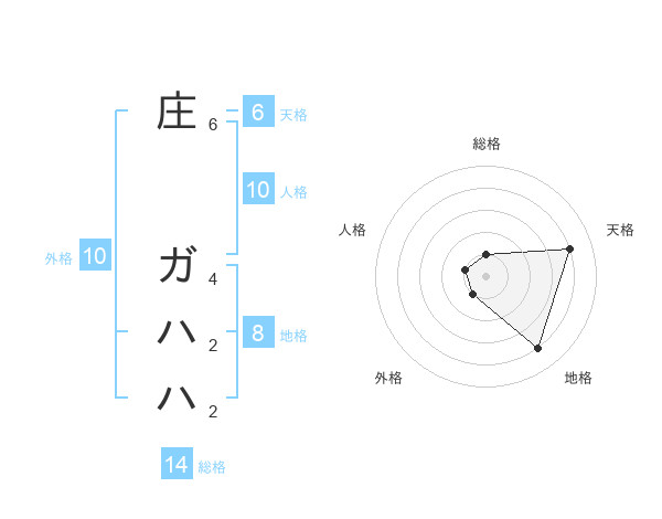 庄 ガハハさんの総格は14画の1点!