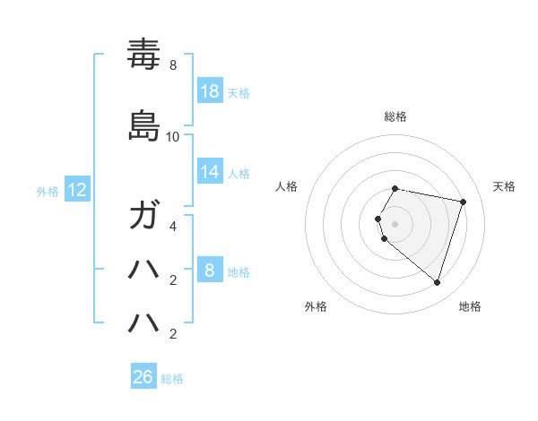毒島 ガハハさんを姓名の画数から五運を鑑定