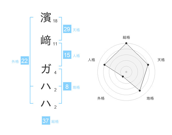 濱﨑 ガハハさんを姓名の画数から五運を鑑定