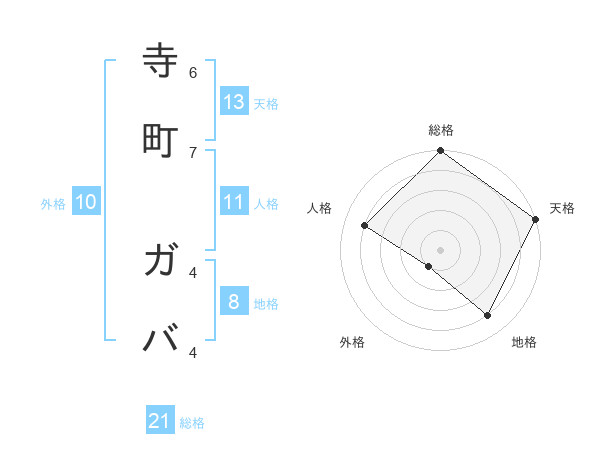 寺町 ガバさんの総格は21画の5点!