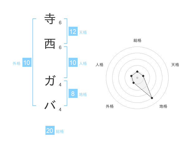 寺西 ガバさんの総格は20画の1点!